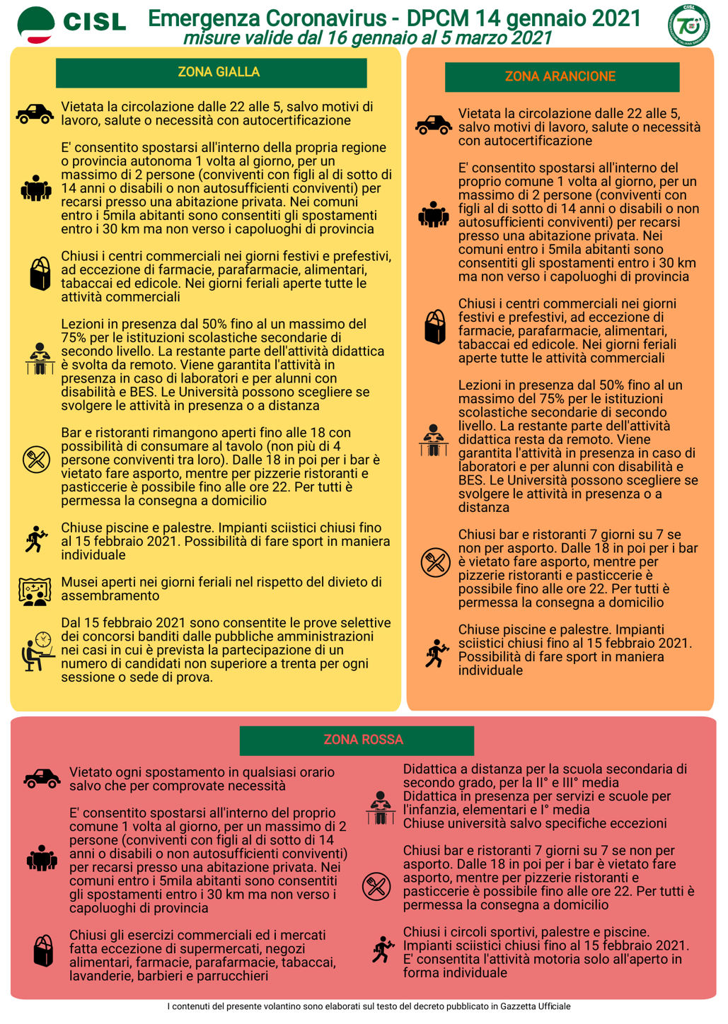 Volantino sul DPCM del 14 gennaio 2021, pubblicato in Gazzetta Ufficiale in vigore dal 16 gennaio 2021